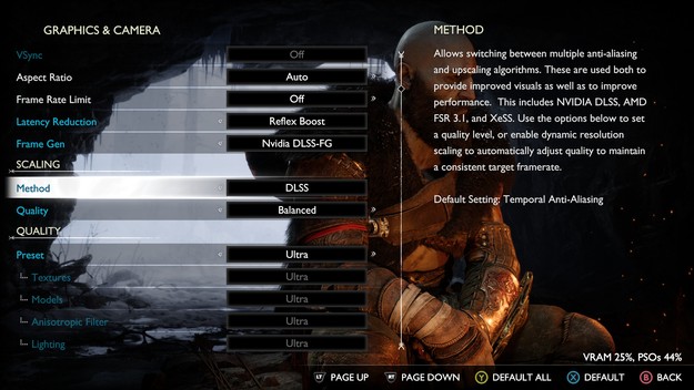 Stvari postaju još bolje kada uđete u bogat meni s grafičkim postavkama, gdje vas čekaju raznolike opcije. Od osnovnih postavki poput rezolucije, VSync-a, omjera slike i ograničenja broja sličica u sekundi, do naprednih opcija poput frame-gena, odabira vrste upscalera i njihove kvalitete, kao i raznih postavki za teksture, osvjetljenje, sjene i još mnogo toga. Još bolje, sve promjene grafičkih postavki vidljive su u realnom vremenu na sceni koju vam igra prikaže u glavnom meniju ili na bilo kojoj sceni na kojoj pauzirate igru.