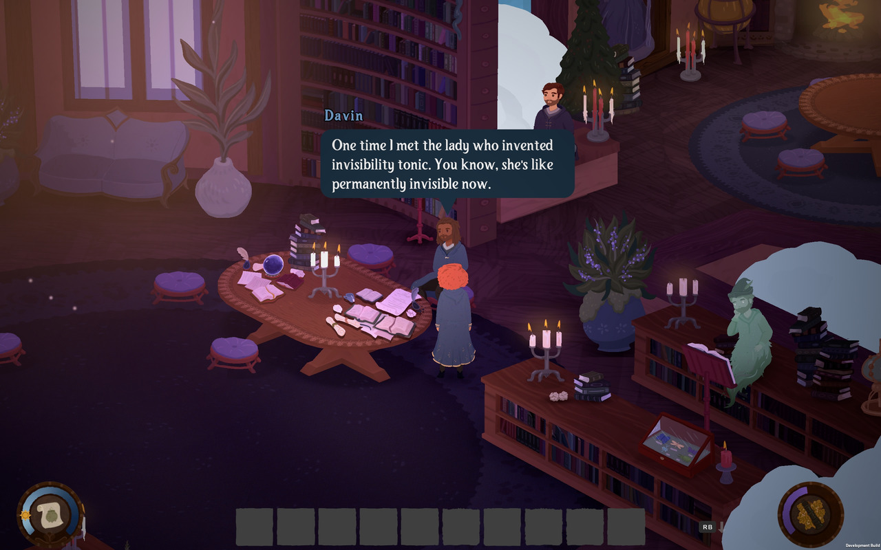 Iako je vidljivo da Songs of Glimmerwick ima razvijenu mitologiju, moram reći da se po pitanju glavne priče u previewu nije dogodilo apsolutno ništa, tako da vam ne mogu reći hoće li naslov više naginjati simulaciji ili naraciji, kao što sugerira opis na Steamu. Jasno je, doduše, da će dijalog imati važnu ulogu jer u bilo kojem trenutku možete pričati gotovo sa svim kolegama. Oni pak svakog dana imaju nešto novo za reći. Uglavnom se tu radi o zvrckastim dijalozima s puno humora i simpatičnih anegdota. Igra je jako cozy, što drugo reći.