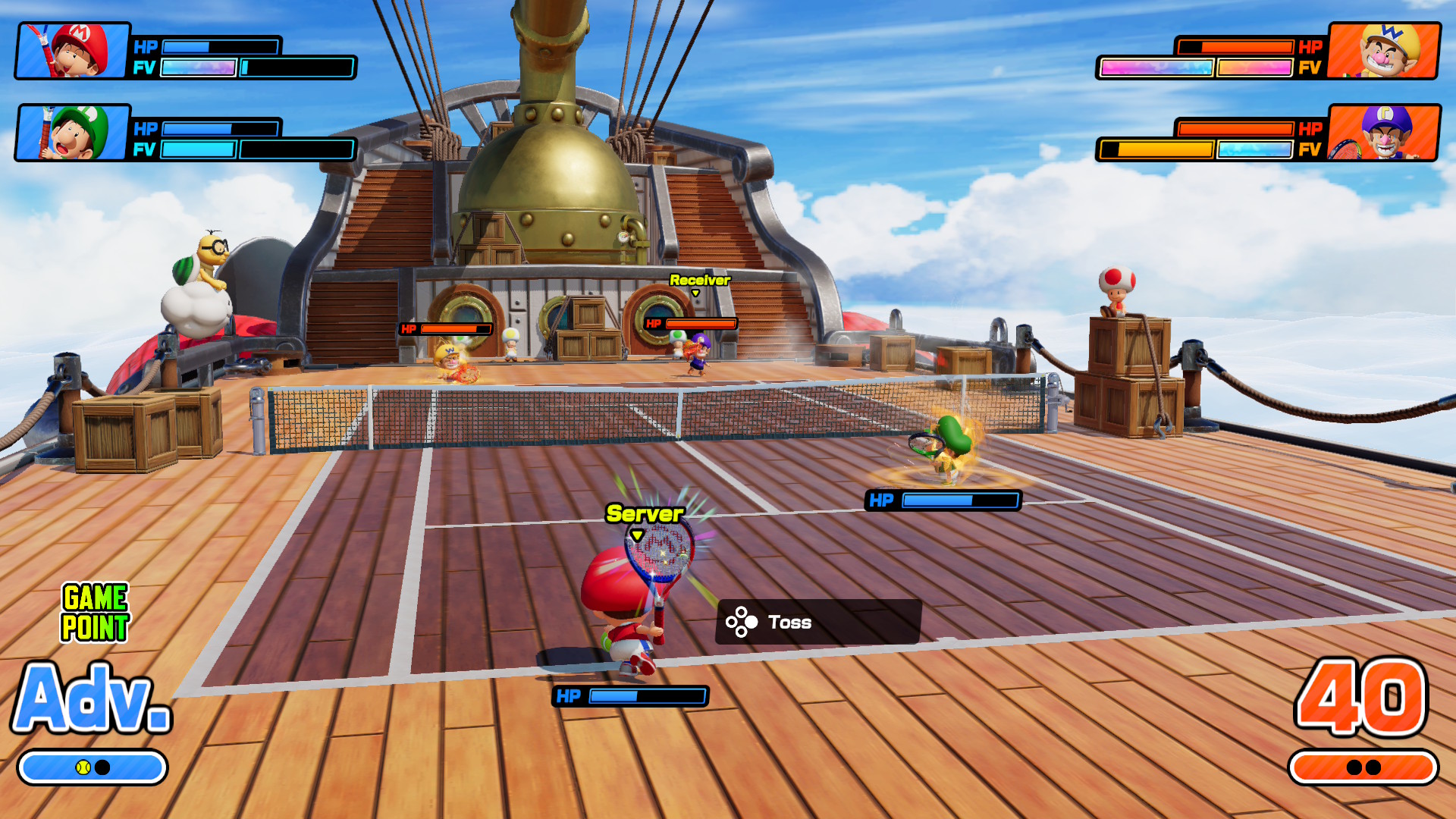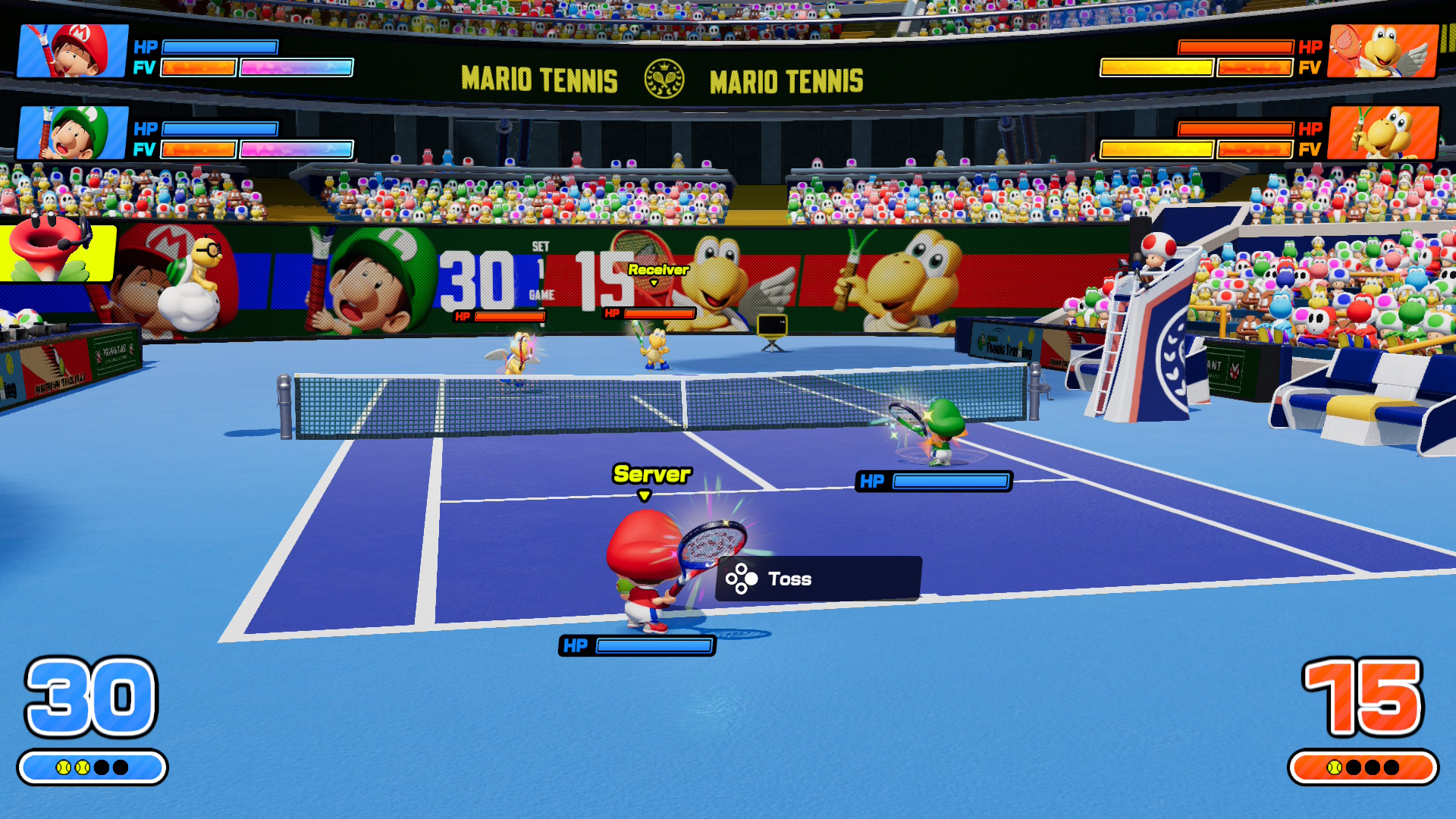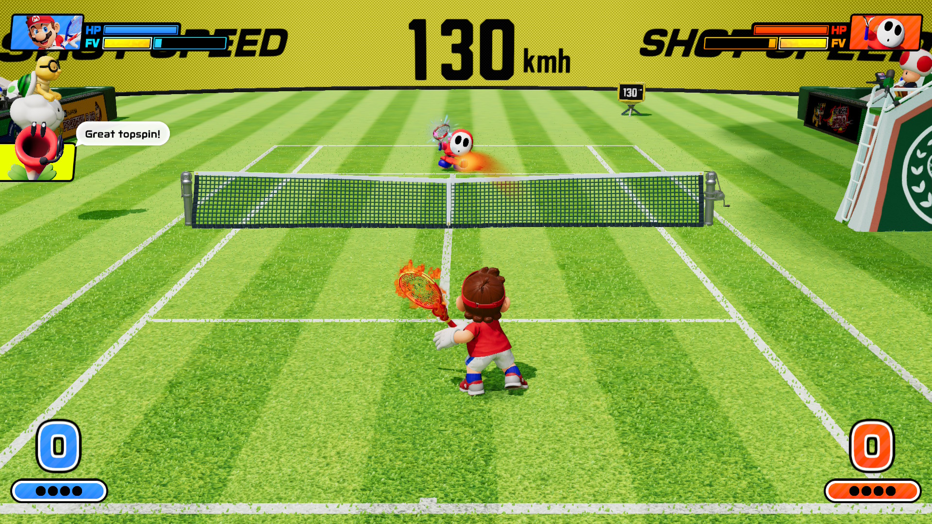A Fever napad? Ovisi o reketu koji odaberete. Zvijezda reket pri padu loptice na protivničku polovicu oduzima dio energije protivniku, dok vaš lik nakratko postaje nepobjediv, baš kao kad pokupite zvijezdu u klasičnim Mario platformerima. Banana reket rasipa kore po terenu, spremne da protivnik zapleše neželjeni balet. Bullet Bill reket pretvara lopticu u projektil koji juri prema suparniku bez milosti. Ideja je jednostavna, ali efektna – tenis nakratko postaje čisti kaos.