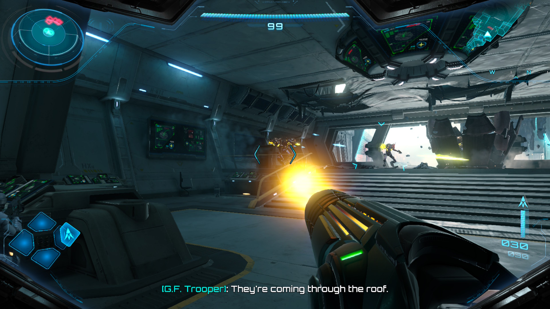 Jedino bih volio da sam ponekad mogao isključiti pomoć suboraca iz Galactic Federationa. Iskreno, najradije bih ih potpuno ugasio. Metroid serijal oduvijek sam obožavao zbog osjećaja usamljenosti, borbe Samus protiv čitavog planeta i tmurnih koridora. Ovdje sam, međutim, redovito bio prekidan pomalo antipatičnim suborcima koji su izrazito stereotipni – od plašljivog lika, preko djevojke koja vam se stalno divi, do tipičnog “dude-bro” kolege. Kao da gledam nekakav akcijski film iz osamdesetih. Da ne spominjem koliko je naporno oživljavanje suboraca usred žestokih bitaka, jer vas u suprotnom dočeka Game Over ekran. Obožavao sam svaki trenutak kada bi me suborci napustili, izgubio bih radijsku vezu i napokon počeo igrati onaj pravi Metroid.