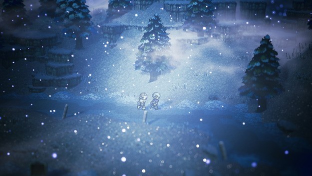 Kao šlag na tortu svakako dolazi audiovizualna prezentacija igre. Iako po screenshotovima možda izgleda kao tipični RPG 16-bitne ere, u pokretu je to sasvim drugačija zvjerka. Octopath Traveler postiže to kombinacijom 2D likova i 3D okoliša čiji su određeni dijelovi poput neprijatelja i građevina visoko stilizirani, a drugi, poput snijega i vode teže realizmu. No, gdje god pogledate, svijet je prepun zanimljivih detalja koji život znače. Od svijetla koje se probija kroz oblake, drveća što se njiše na vjetru, ili osvjetljenja koje savršeno pogađa ugođaj raznovrsnih lokacija na mapi.