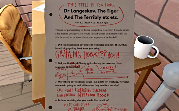 Iako Dr. Langeskov ne pripada „pričaj mi svoju priču“ tipu igara u toj mjeri kao što je pripadao The Stanley Parable, te se tako ne može pohvaliti različitim krajevima, i dalje je to naslov u kojoj igrač ima aktivnu ulogu u kreiranju smjera i tona čitave priče. Ako vas imalo privlači ideja igre u igri te tražite nešto kratko, ali slatko – ovo je igra za Vas.